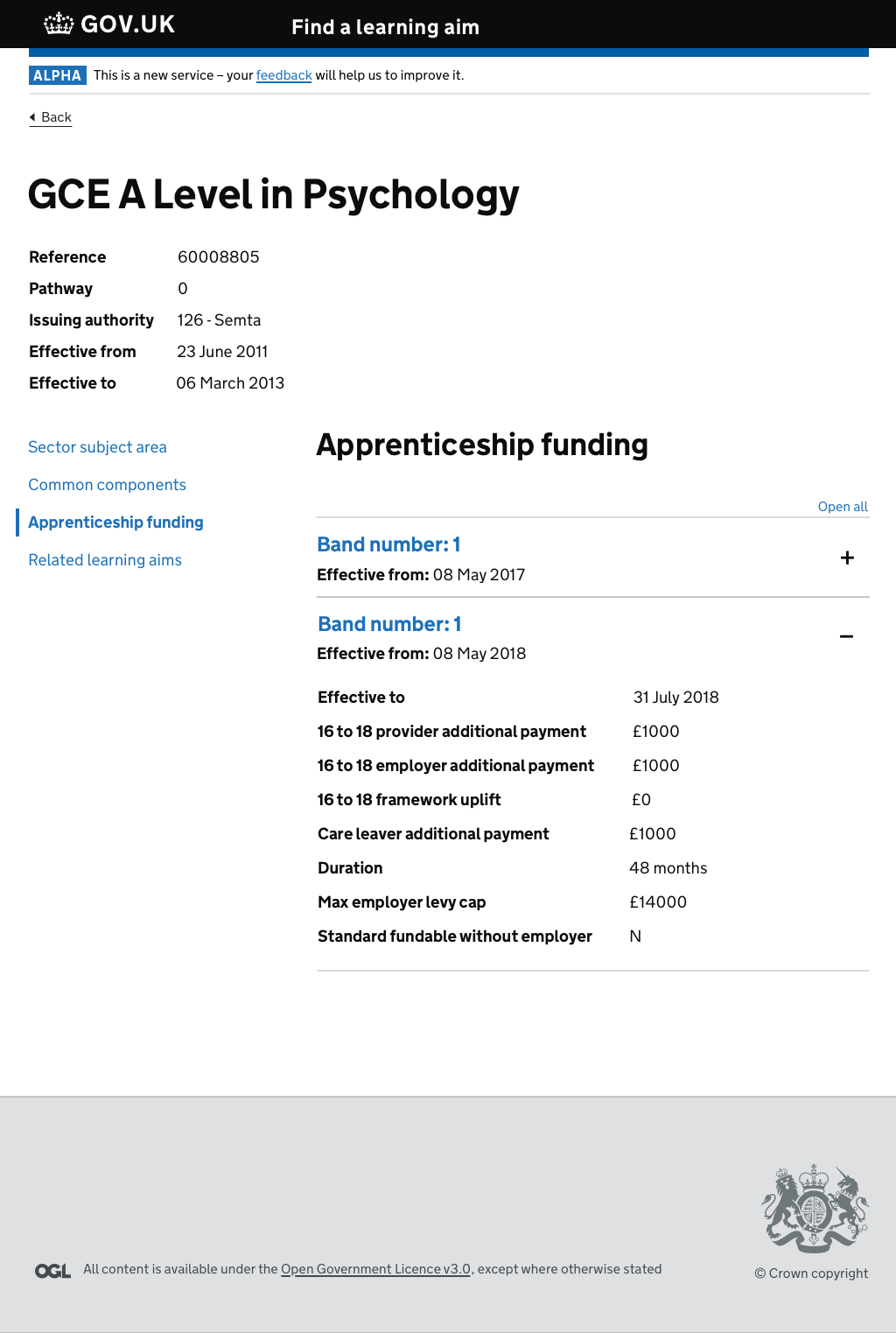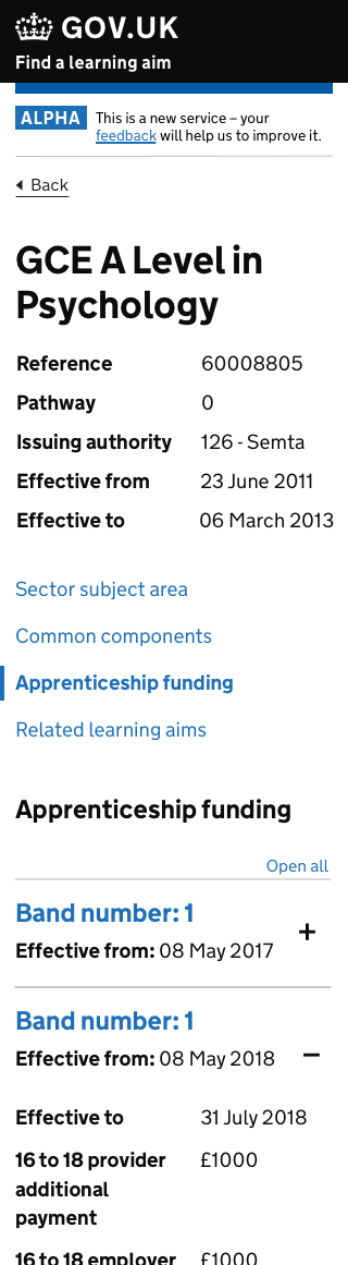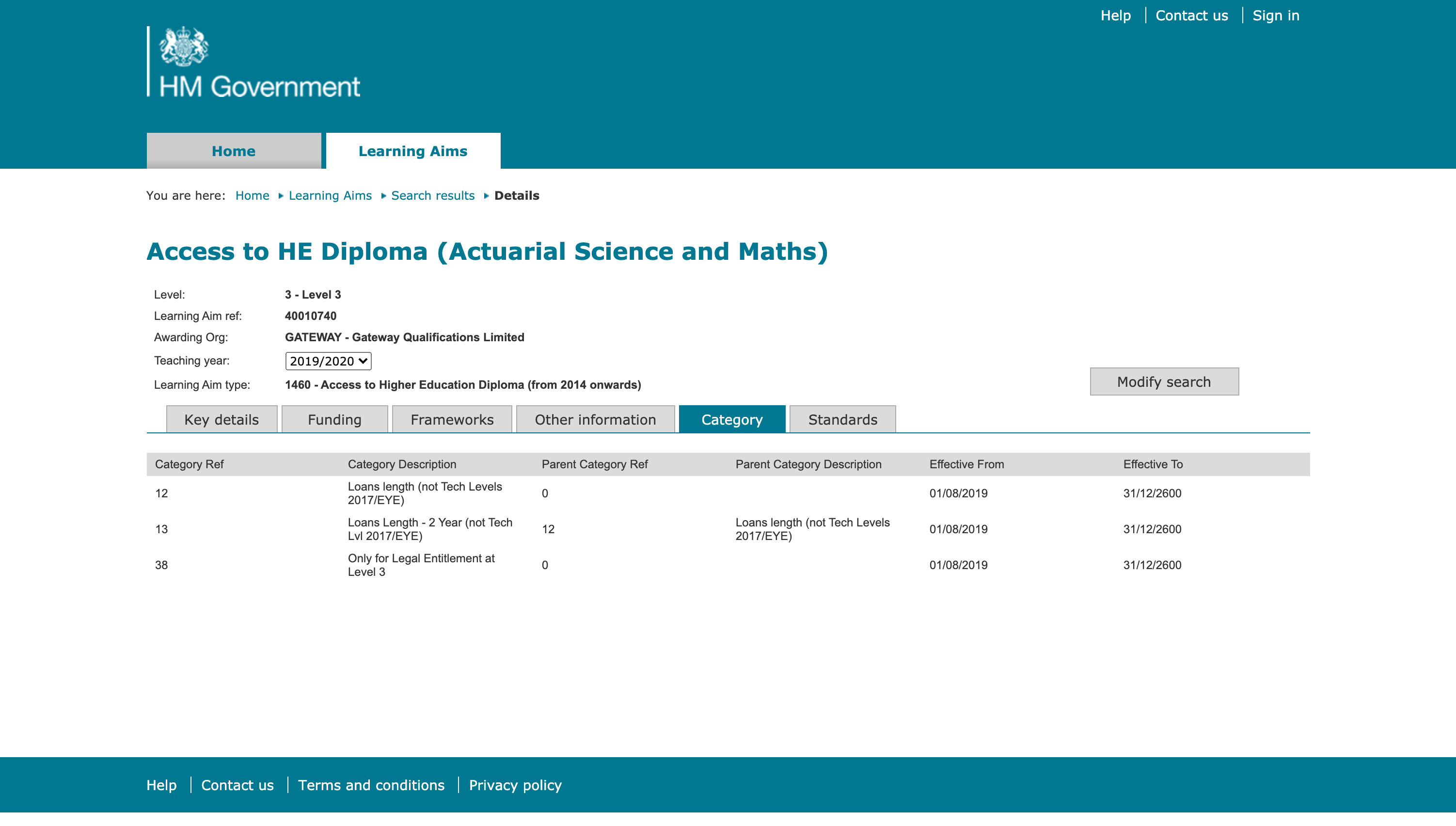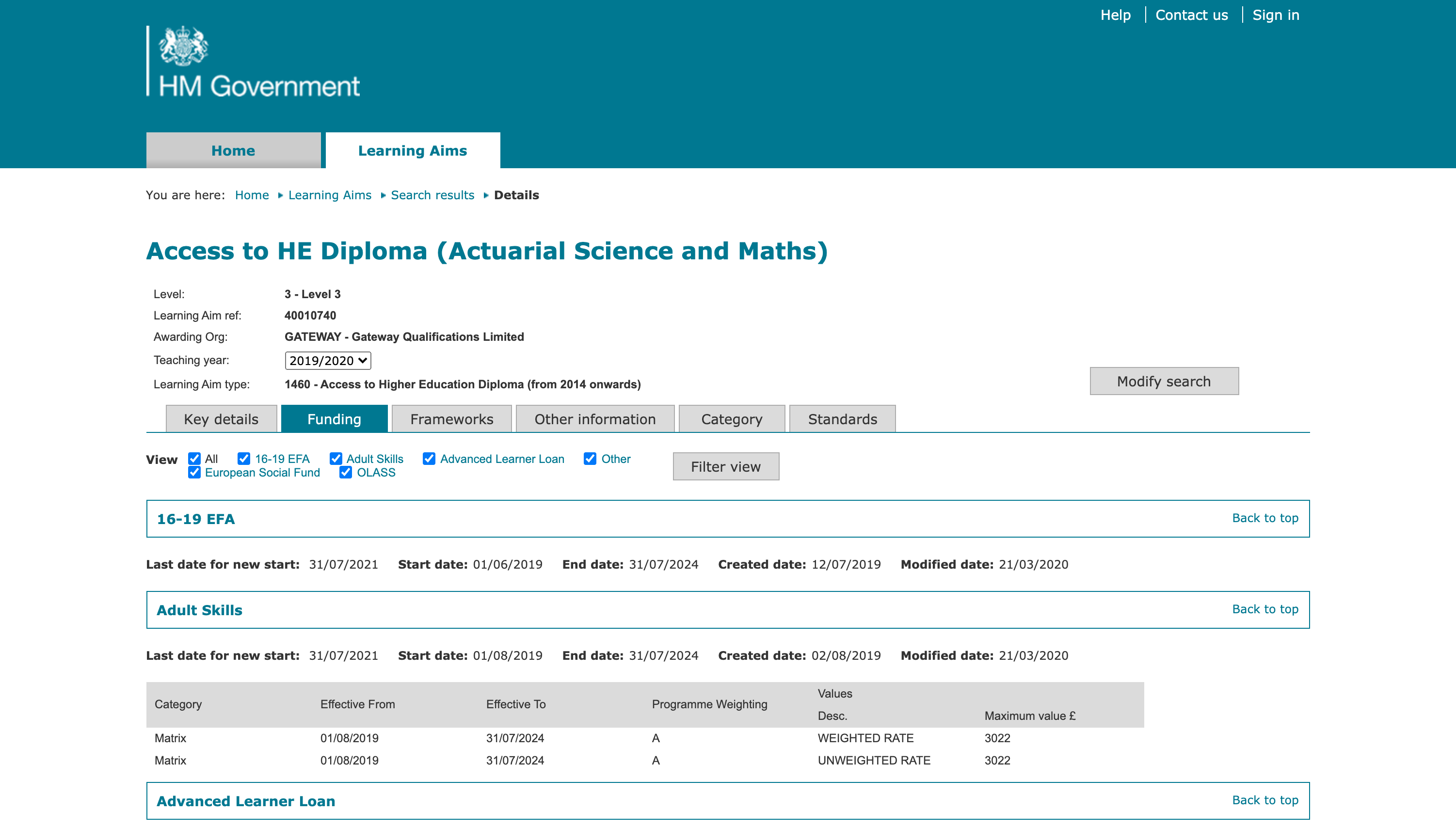 The "Find a learning aim" is an information service to find the latest information on available qualifications, standards, apprenticeships, T Levels and Units.