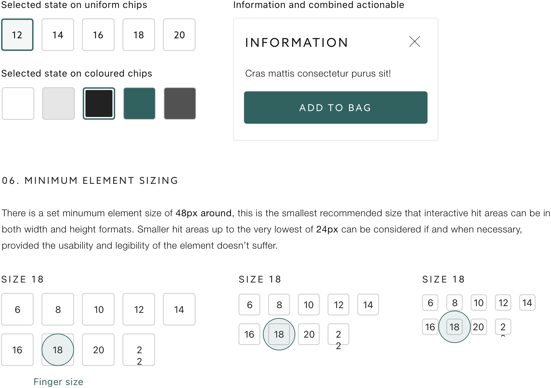 Some of the main areas I focused on included creating and refining the size and color selectors, typography, and developing a new component for the tray that slides in from the bottom. These elements were designed to improve user interaction and create a more seamless and engaging experience.