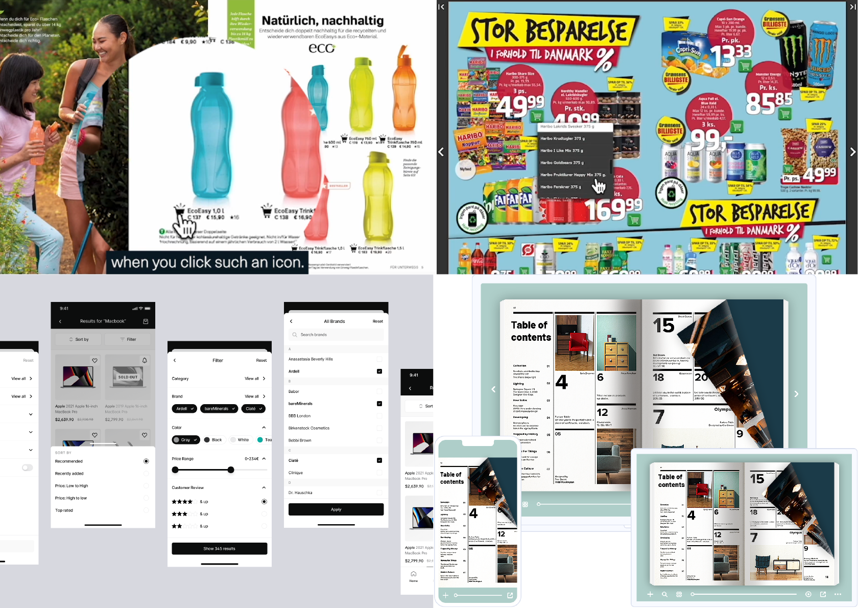 Building on the early conceptual work, design thinking, and discussions with stakeholders, I created detailed designs for several concepts. Two stood out as favourites: one mimicked the familiar flip-book style, the other used continuous scrolling.