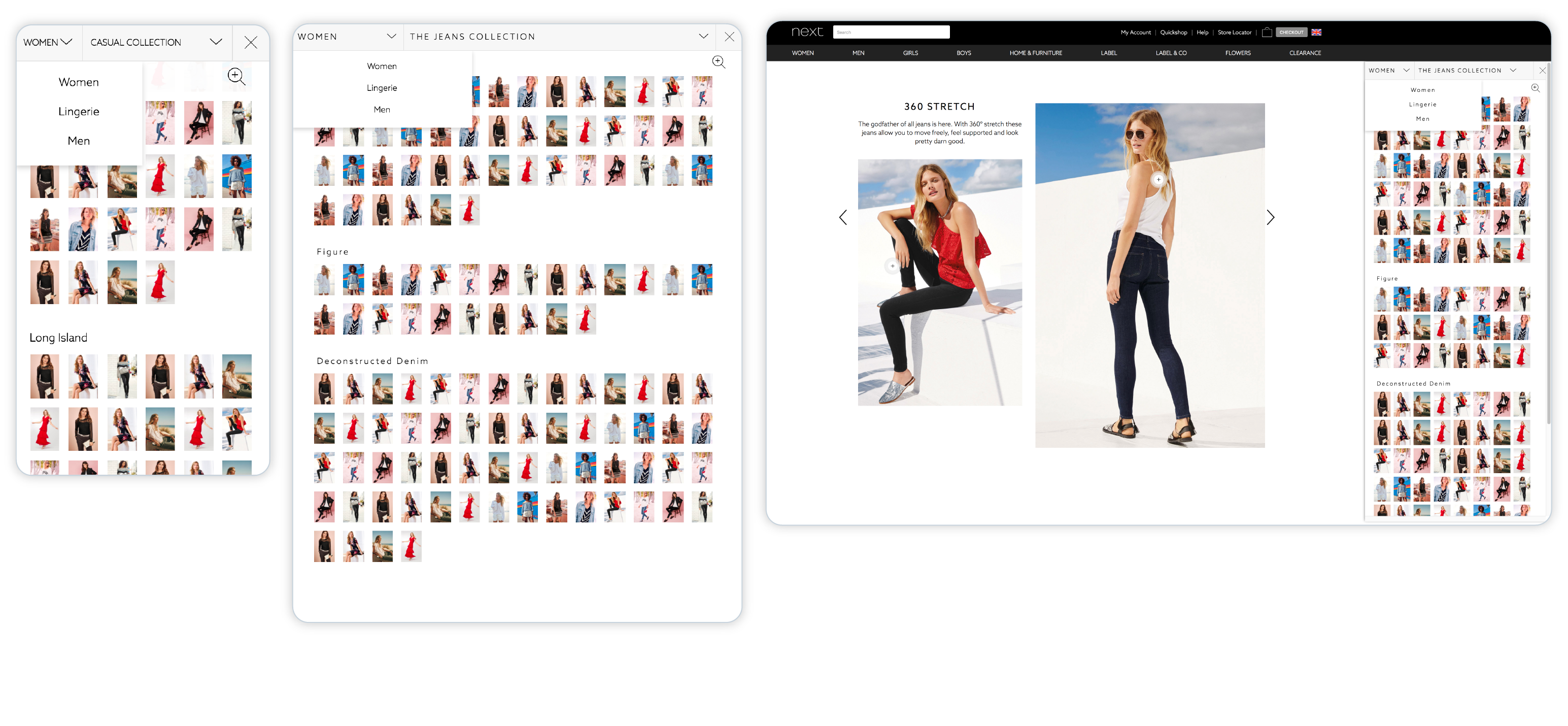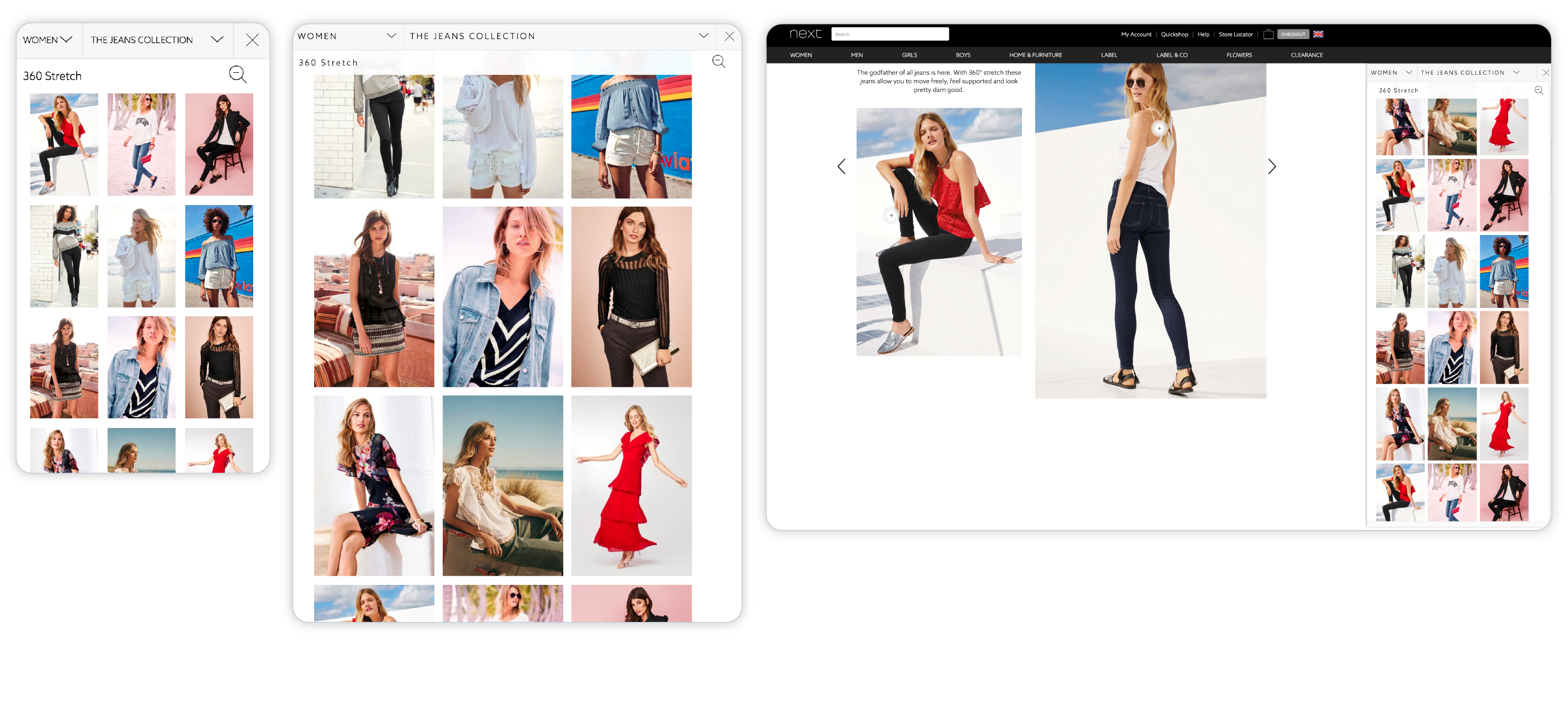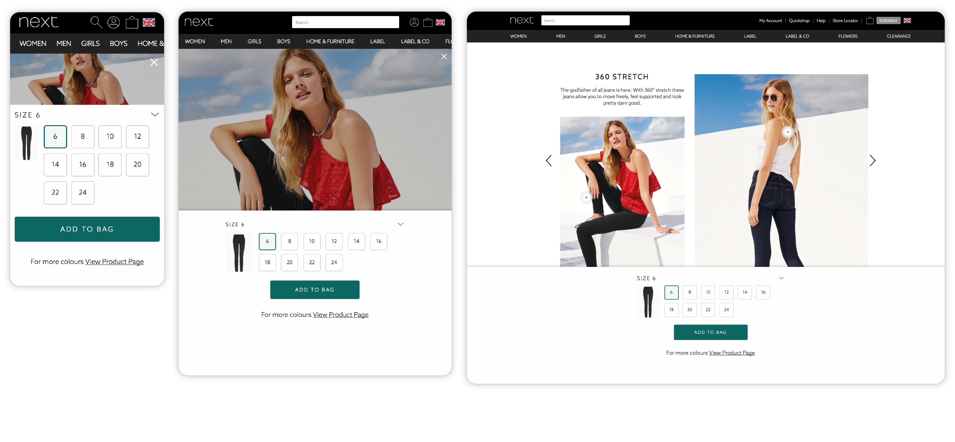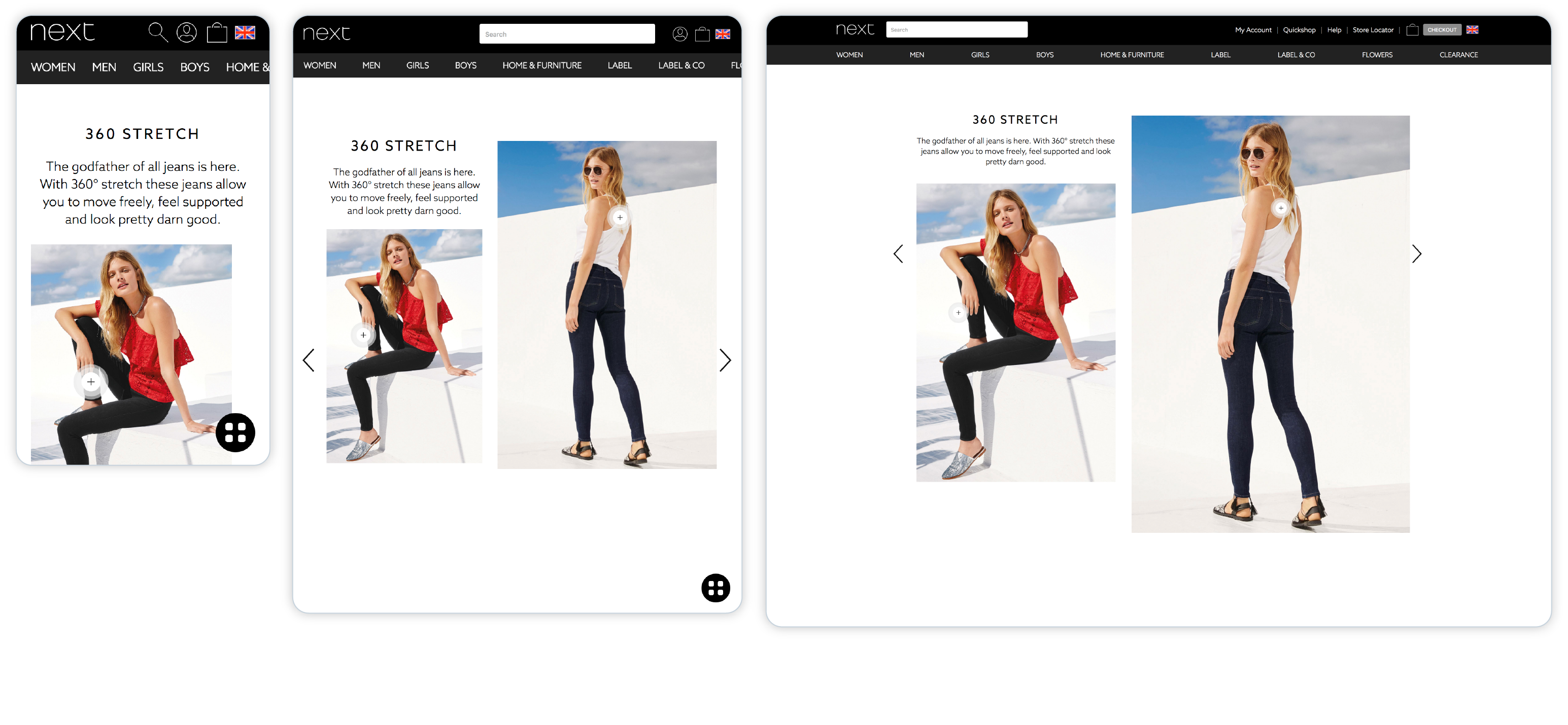 Consistent user experienceAs a seamless experience across different devices was vital, I followed a responsive design solution to provide a consistent and enjoyable experience whether users were on a desktop, tablet or smartphone. The new design had to be scalable to accommodate other non-clothing products, such as furniture, and ensure users could also adapt to this new user experience.